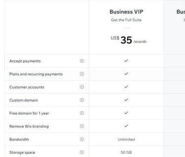 this plan include selling in website (e-commerce) and free images, themes, animations, easy access, live chat box for owners website, professional looks, e-ticketing, uploading videos, free marketing up to 2000 emails, animated survey and registration forms